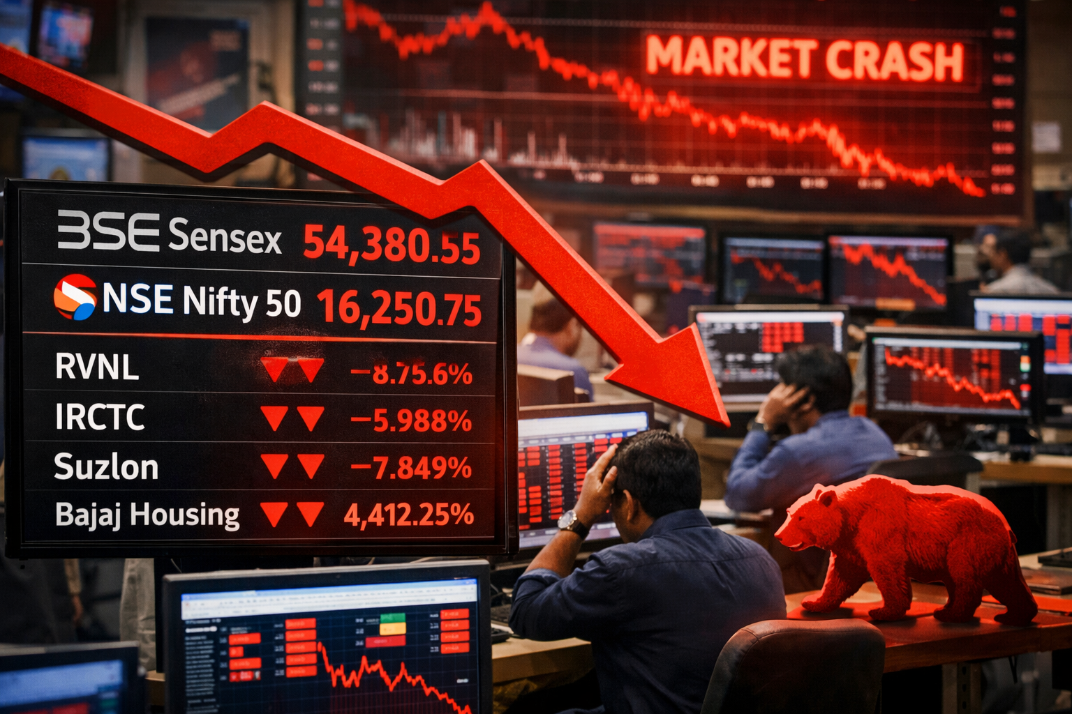 Mumbai, March 2, 2026 – Indian equity markets plunged sharply on Monday as global risk aversion intensified, pushing benchmark indices into the red and dragging dozens of stocks to one-year lows. The BSE Sensex has now lost over 2,000 points over the past three sessions, wiping out more than ₹10 lakh crore in investor wealth, while the NSE Nifty 50 also traded deep in negative territory.